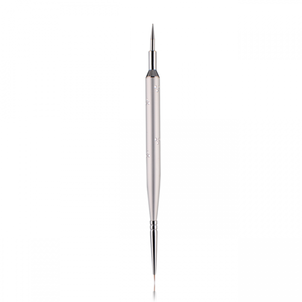 Удобный, практичный и красивый инструмент. Кисть предназначена для любителей современных техник ногтевого дизайна, имеет привлекательный внешний вид, в котором удачно сочетаются металлизированные и пластиковые детали. Эта кисть заменяет две стандартные, экономя деньги, место на столе и в рабочем чемодане.