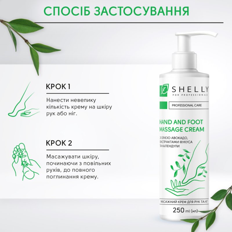 Массажный крем Shelly™ поможет расслабиться после процедуры маникюра или педикюра и устранить любые признаки сухости, шелушения и дискомфорта кожи. Крем обладает легкой консистенцией, которая постепенно тает под влиянием температуры кожи, обеспечивая длительное скольжение и глубокое питание кожного покрова. Уникальная формула содержит комплекс натуральных масел и экстрактов.