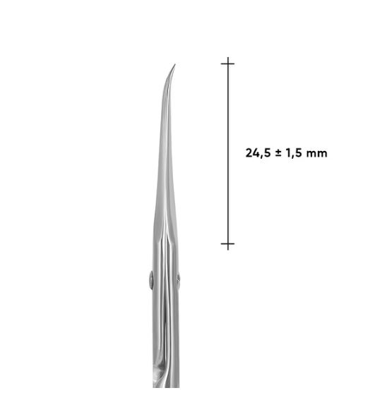 STALEKS EXCLUSIVE 21 2 ножницы для кутикулы профессиональные изготовлены из медицинской стали, с многоэтапной полировкой пастой ГОИ до зеркального эффекта, что повышает стойкость к повреждениям и коррозии. Работая инструментом с лезвиями в виде крючка, мастер получает отличный обзор рабочей зоны, ему не нужно выворачивать кисть в зоне синусов, а рука не устает при длительной работе. Кончики отполированы с внешней стороны и не царапают ногтевую пластину.
