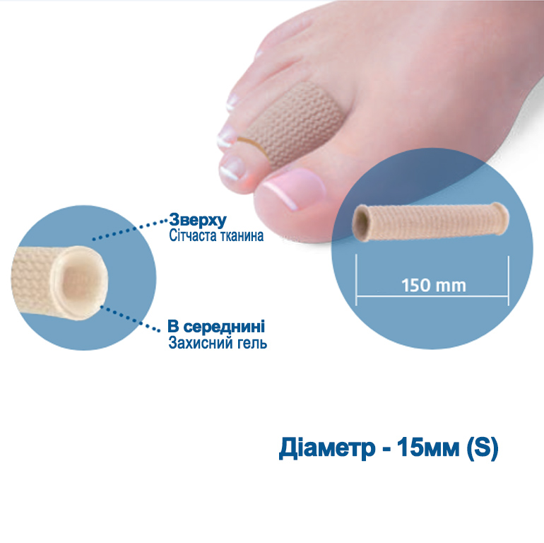 Трубка длиной 15см, толщиной 2мм, хлопчатобумажная рифленая ткань, внутри покрыта специальным гелем.