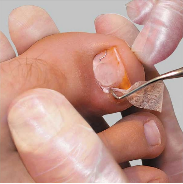 - Підведіть край нігтьової пластини кюреткою. Встановіть каполін під піднятий край для фіксації і знезараження тканин.