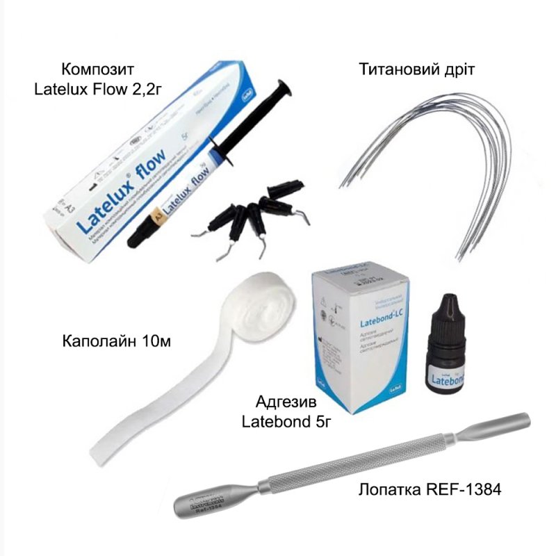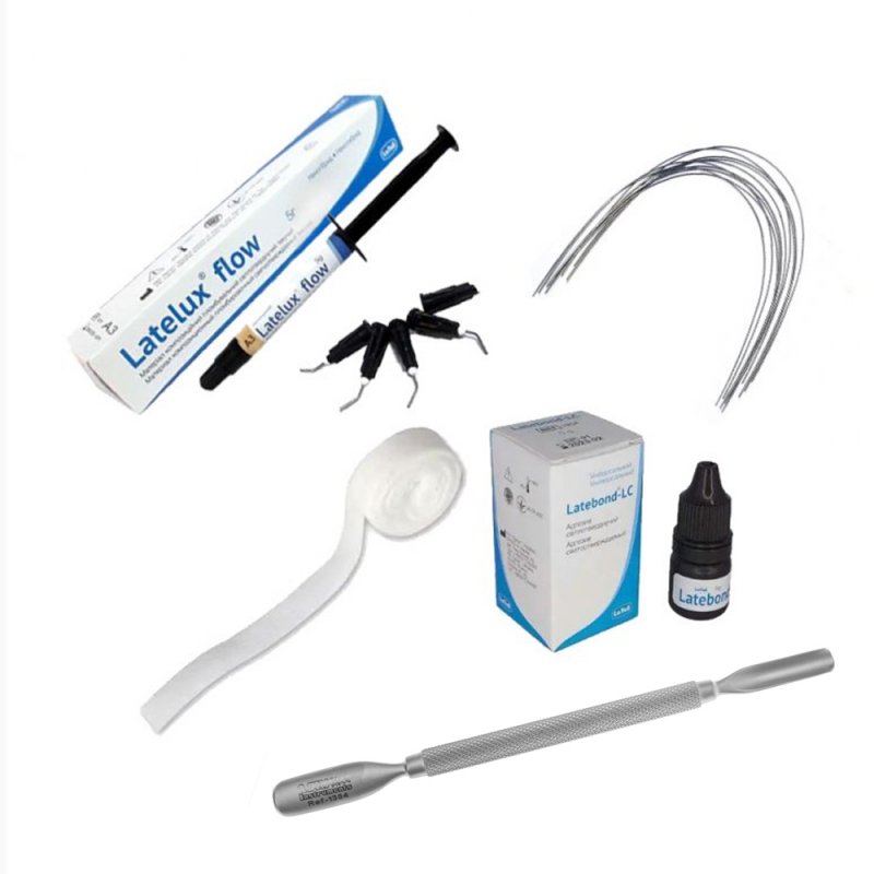 - Можна наносити композит Лателюкс порційно, фіксуючи світлом по 10 -15 секунд. У такій схемі потрібно остаточна фіксація 40сек. Порція адгезиву не повинна просвічувати дріт.