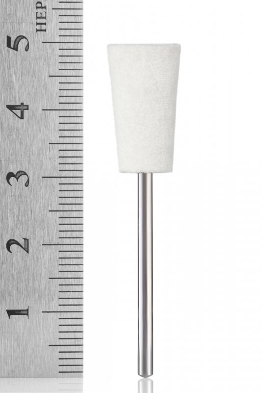 Фетрова насадка для фрезера для полірування натуральних нігтів виготовлена зі спеціального білого фетру, має м'яку структуру. Застосовується в манікюр і педикюр для завершальної обробки (полірування) нігтьової пластини, для отримання глибокого глянцю.